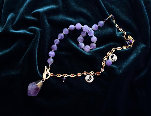 Amethyst Raw Crystal Pendant Necklace • Purple Gemstone Jewelry • 18 inch Statement Necklace • Gift for Her