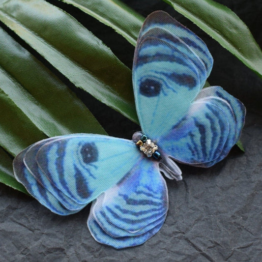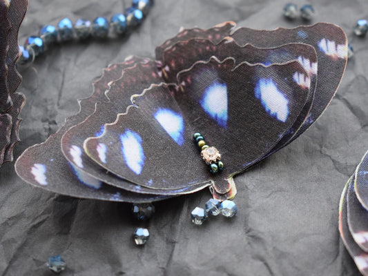 Blue Moon Hypolimnas Bolina Butterfly Silk Hair Clips