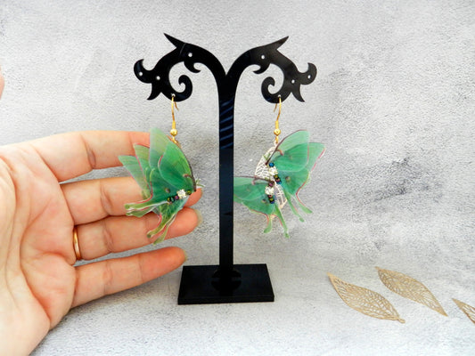 Butterfly Drop Earrings are a celebration of movement and light — delicate silk butterflies that sway gently as you walk, dance, or turn your head. Each pair is handcrafted from chiffon and organza, designed to mimic the flutter of real wings kissed by morning light.