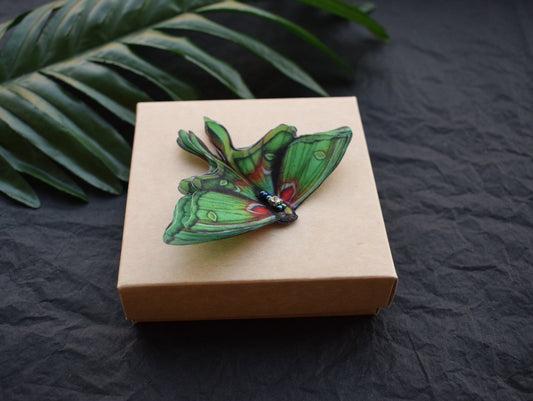 Dark Lunar Emperor Moth Hair Clips or Brooch