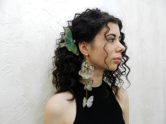 Embrace the graceful allure of the Butterfly and Moth Earrings collection. Featuring detailed wing designs, each pair is carefully crafted to highlight nature’s beauty. The long, delicate pieces offer a sense of movement and lend an airy, whimsical charm to your ensemble. Perfect for those who love the outdoors and free-spirited styles, butterfly accessories bring a touch of feminine elegance to both casual looks and elegant occasions. Let your look take flight with these striking statement earrings.