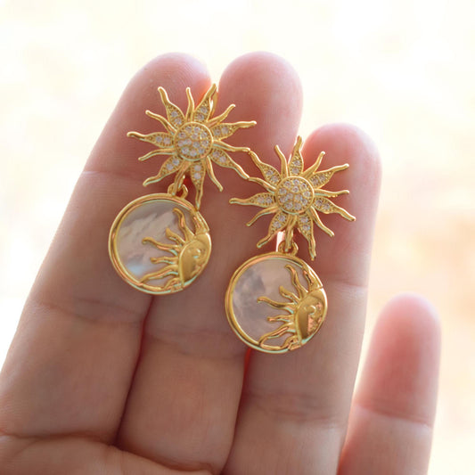 Sun and Moon Pearl Earrings — Celestial Gold or Silver Jewelry