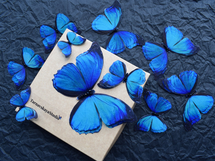 Silk Blue Butterflies Decoration Applique Set of 6 pcs