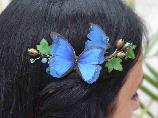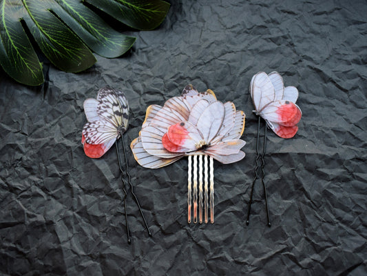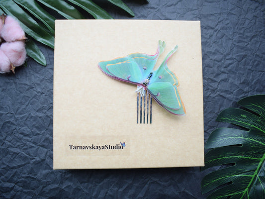 Silk luna moth butterflies hair pins and comb set of 3 pcs