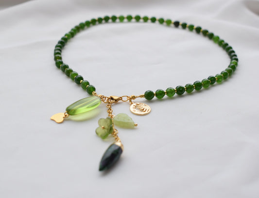 Green Agate Crystal Necklace – Gold Chain Jewelry with Gemstones, Elegant Gift for Women