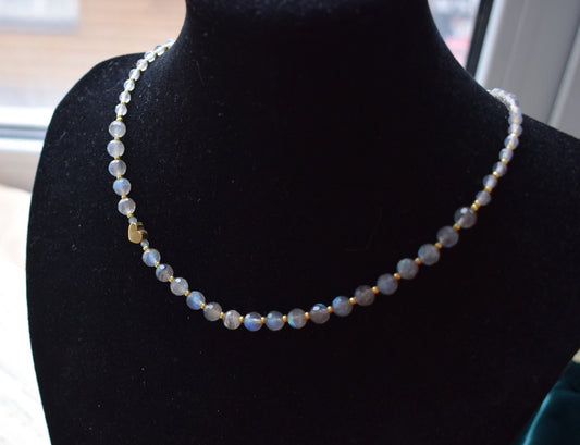 Labradorite Necklace with Heart Bead - Crystal Choker Jewelry Gift for Her
