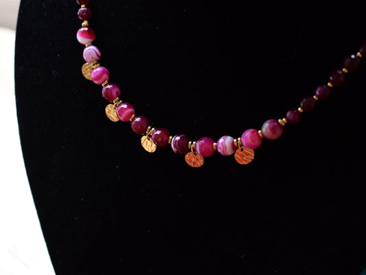 Red and Pink Agate Necklace – Gold Chain Gemstone Jewelry Gift for Women