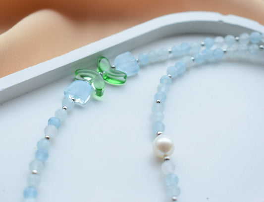 Crystal Choker Necklace Blue Tulip flowers