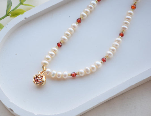 Pomegranate Pendant Necklace 14k Gold Plated - Spinel or Freshwater Pearl - Elegant Jewelry Gift for Women
