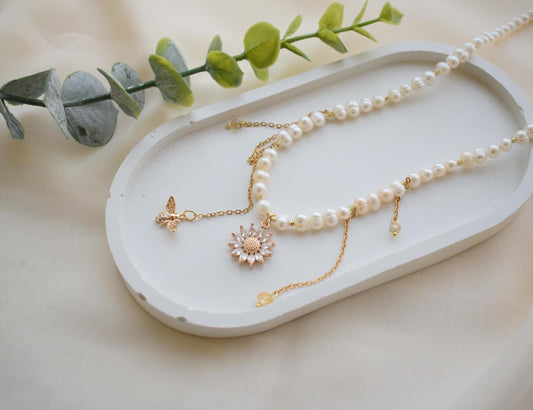Freshwater Pearl Choker Necklace – Bee and Sunflower Minimalist Jewelry Gift